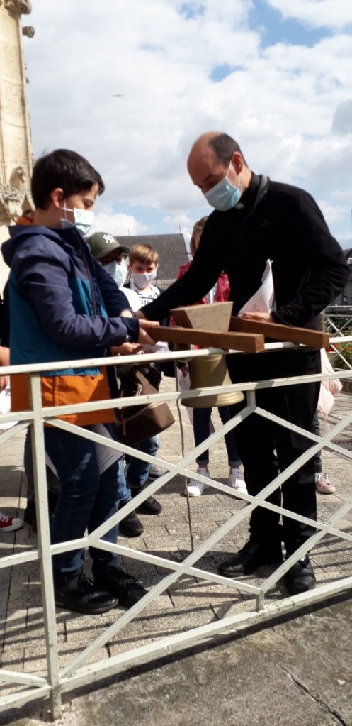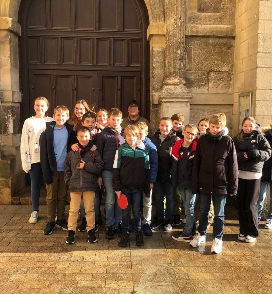 Mardi 1 septembre 2020, tous les élèves de 6ème ont pu se rencontrer, se découvrir ou se retrouver lors de cette journée de rentrée un peu spéciale pour eux. Madame Colnot, professeur principal d’une classe, a pu travailler à ce projet dès le mois de juin afin de préparer aux enfants, une journée parfaite. Ils ont pu par petits groupes, accompagnés d’enseignants, sillonner notre ville et apprendre, jouer, développer de nouvelles amitiés autour d’un pique-nique. Le Père Christophe a également accueillis les élèves dans l’église et a fait sonner Régulus, niché dans le clocher (représentant un général romain symbole de la parole donnée. Le temps fût clément, voire beau. Bref, ce fût une belle journée!