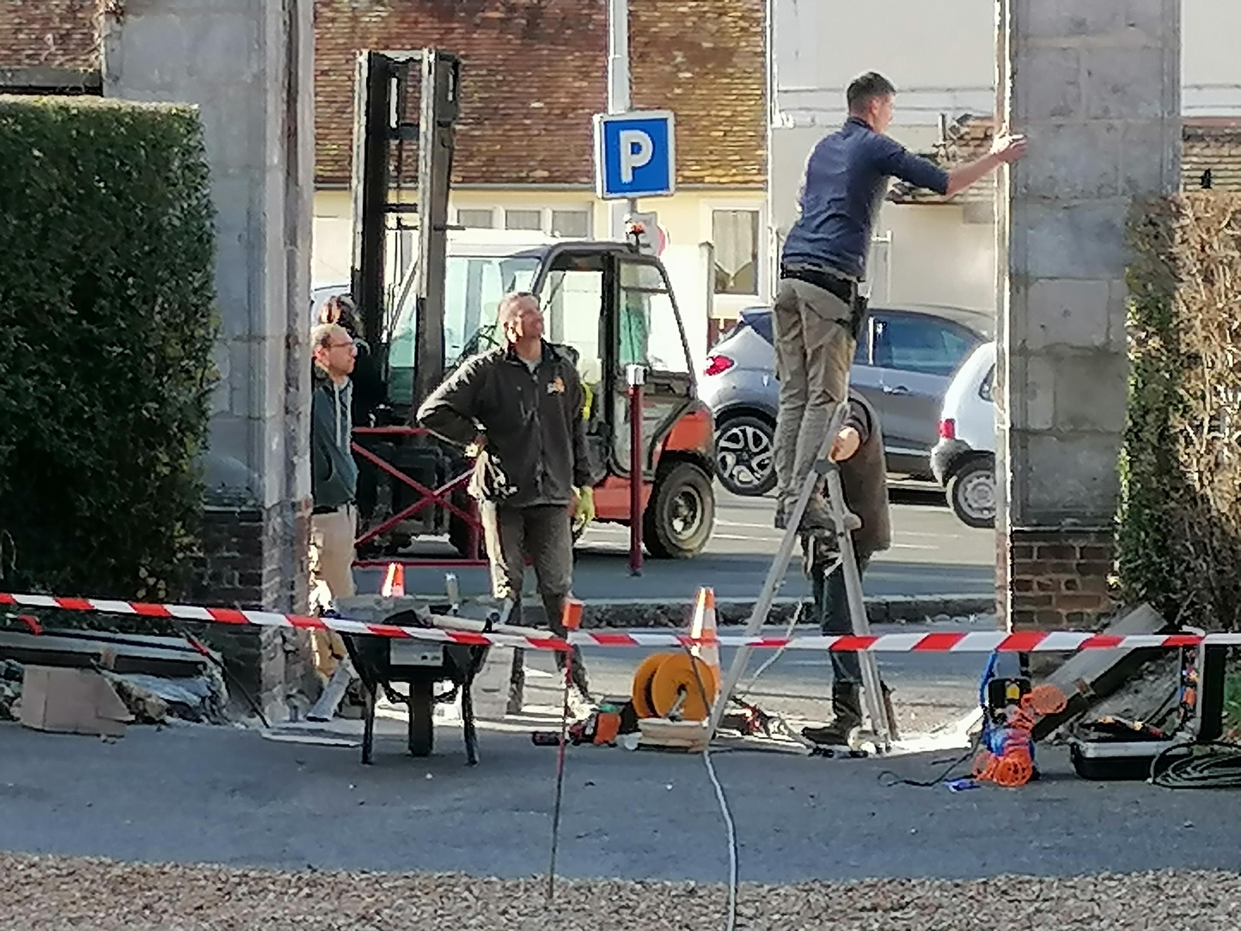 Démontage total du portail afin de le restaurer et préparation du chantier.