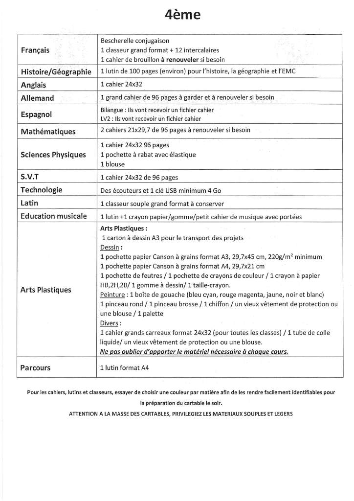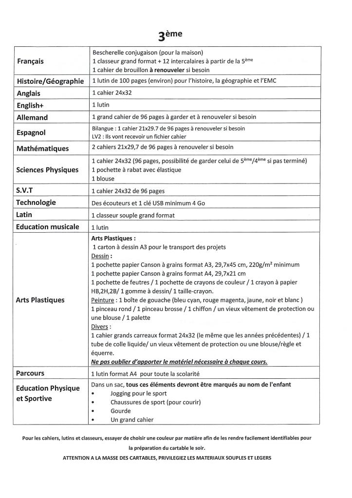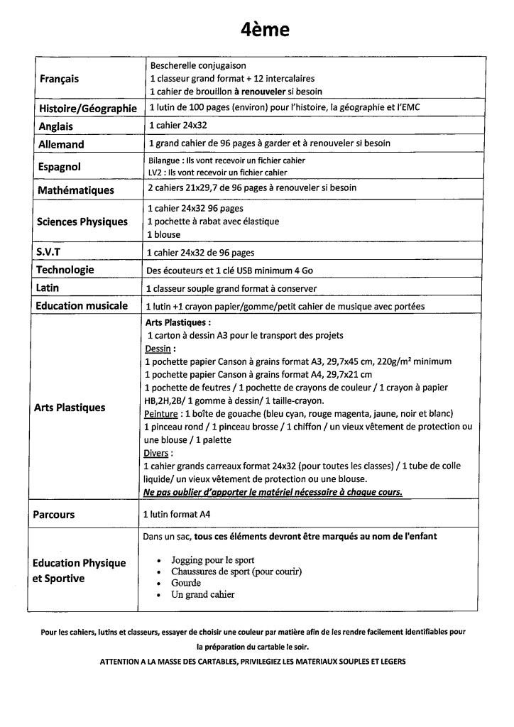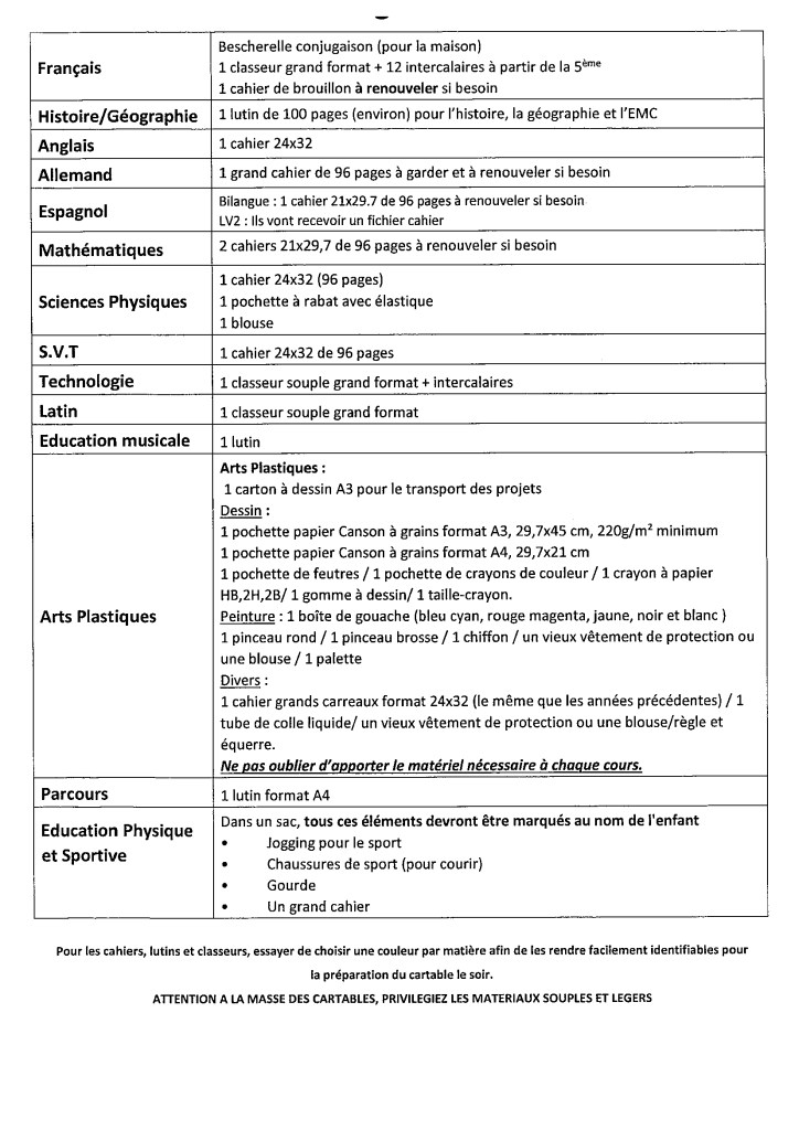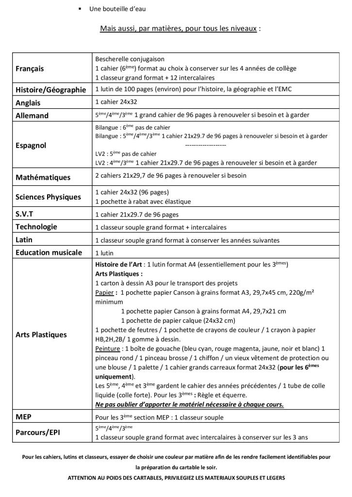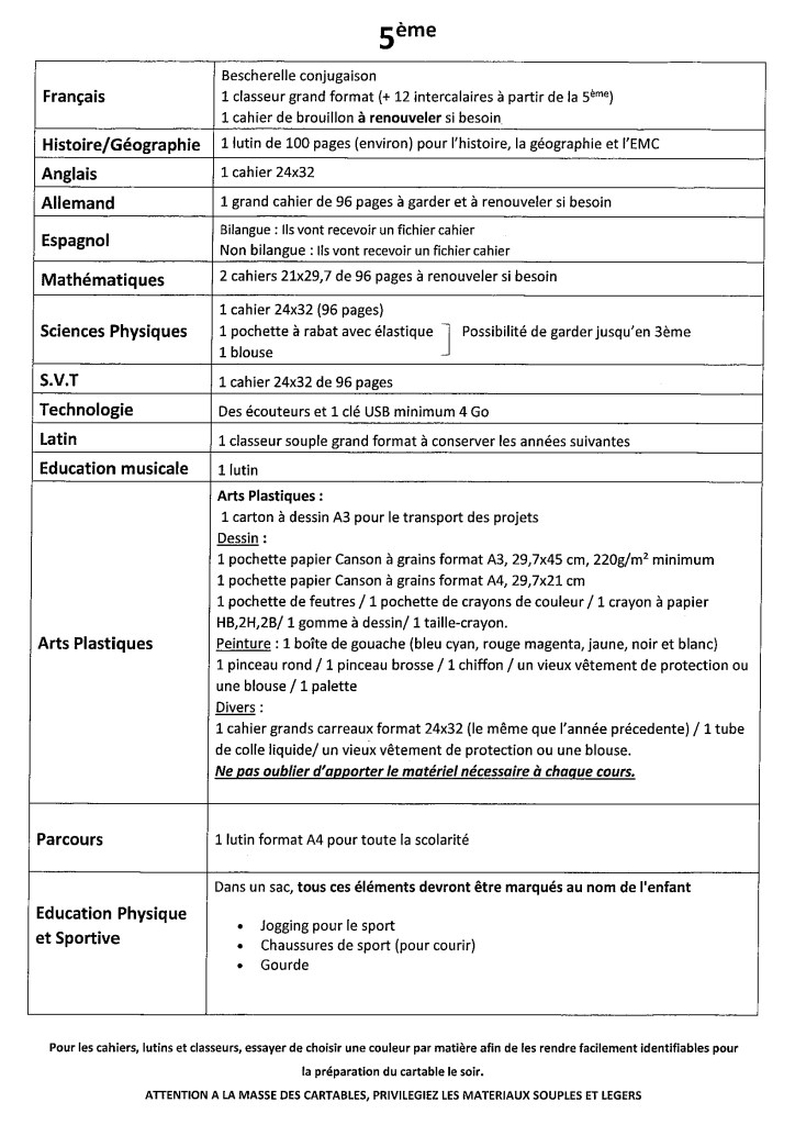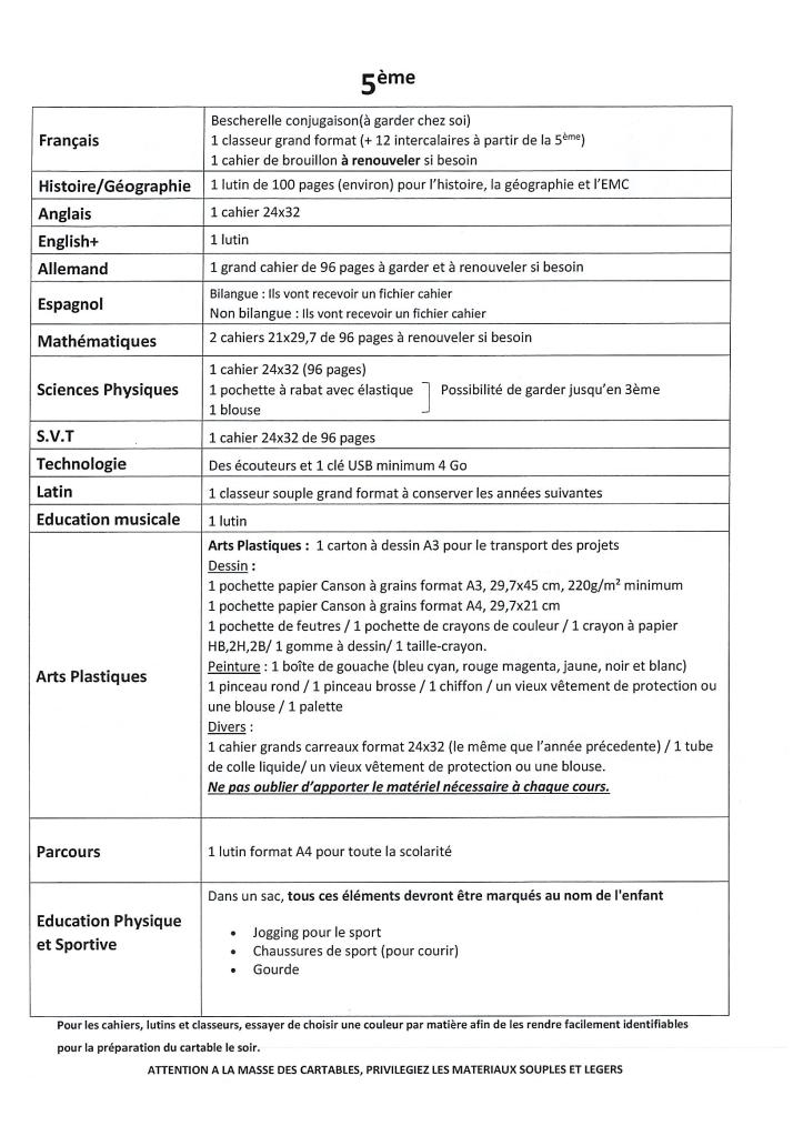LISTE DES FOURNITURES SCOLAIRES 2021/2022