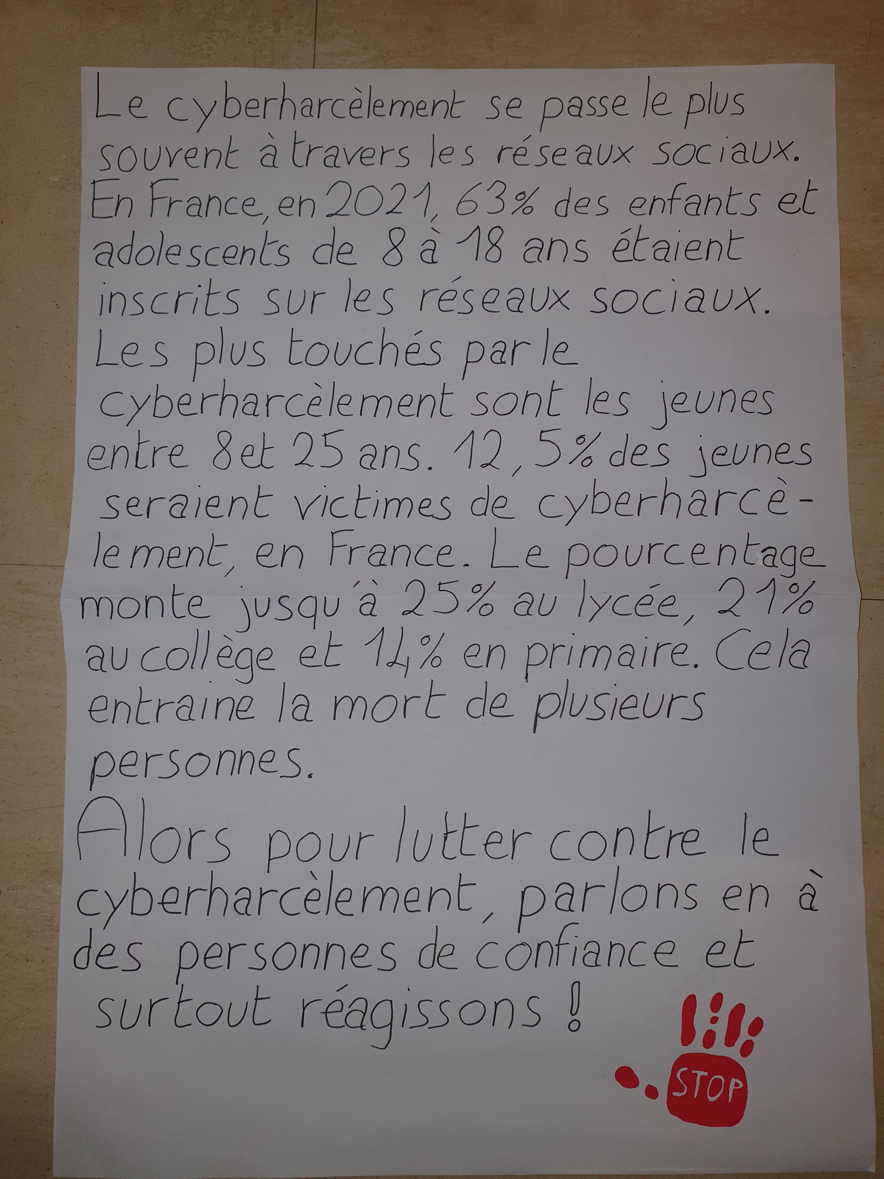 Jeudi 09 novembre nos élèves de primaires ont « travaillé » à lutter contre le harcèlement. Une belle journée de réflexion et de partage.