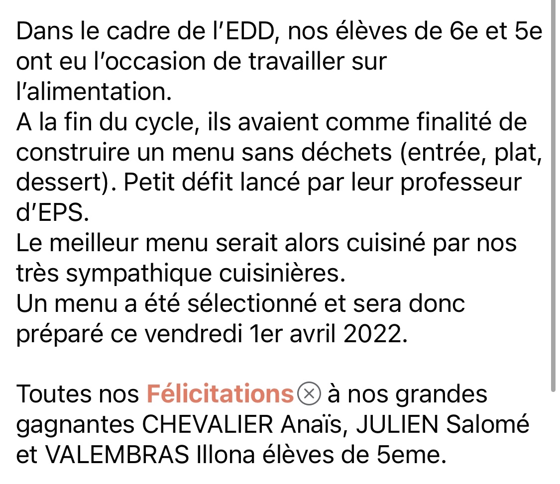 N’hésitez pas à vous rendre sur la page facebook de l’établissement. Vous y découvrirez en temps réel, les projets réalisés par vos enfants.