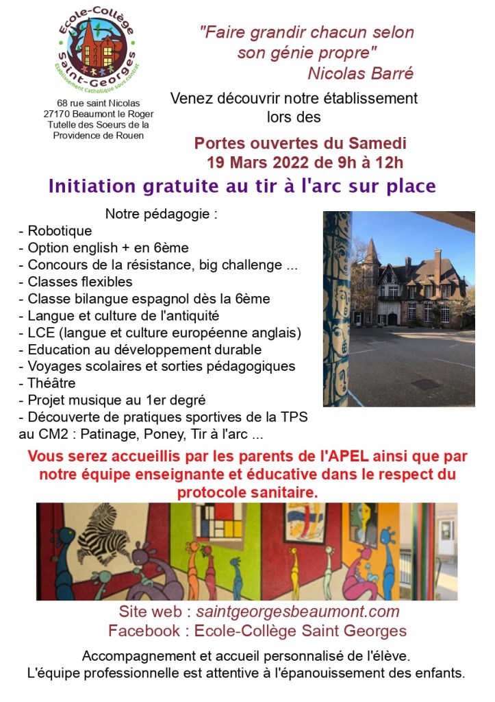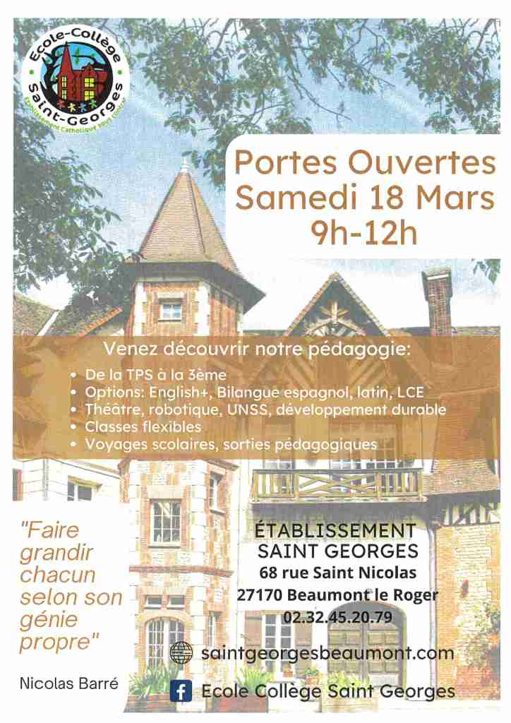 Les inscriptions sont déjà ouvertes dans notre établissement ! Venez nous rencontrer et découvrir Saint Georges !