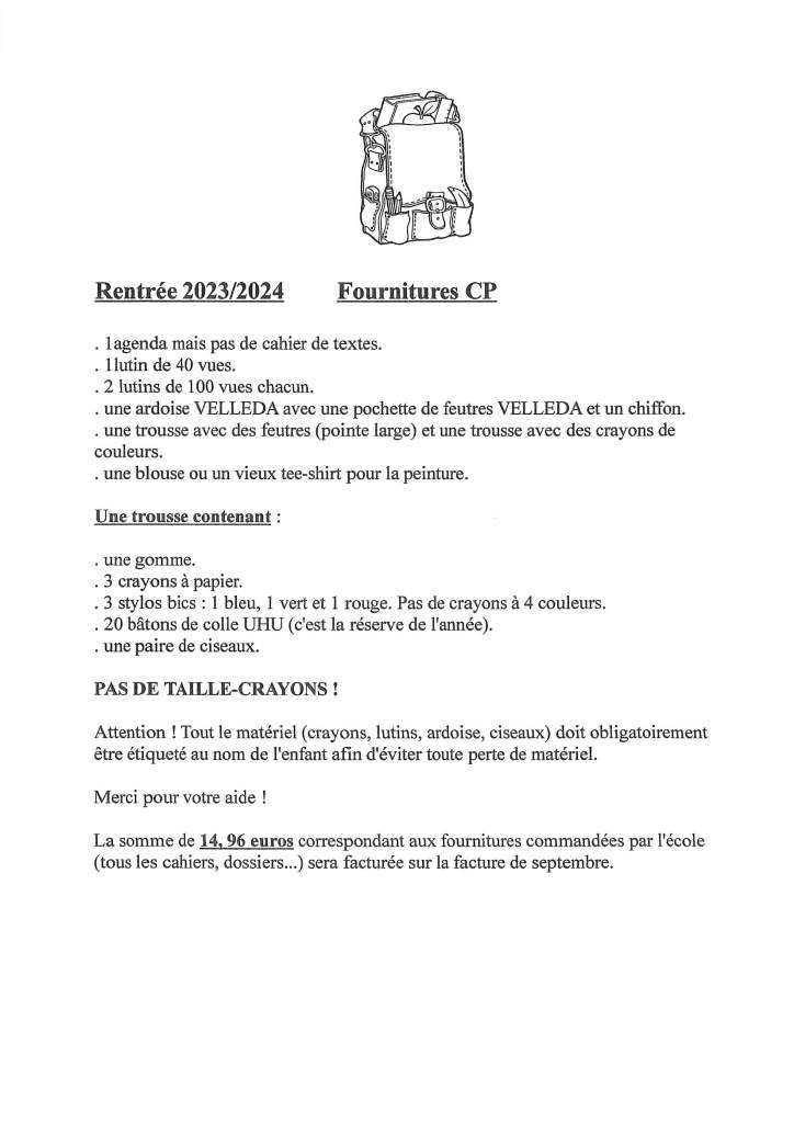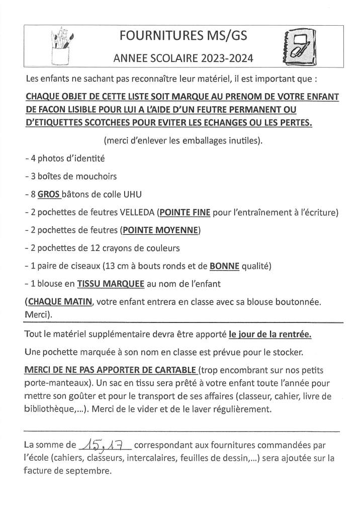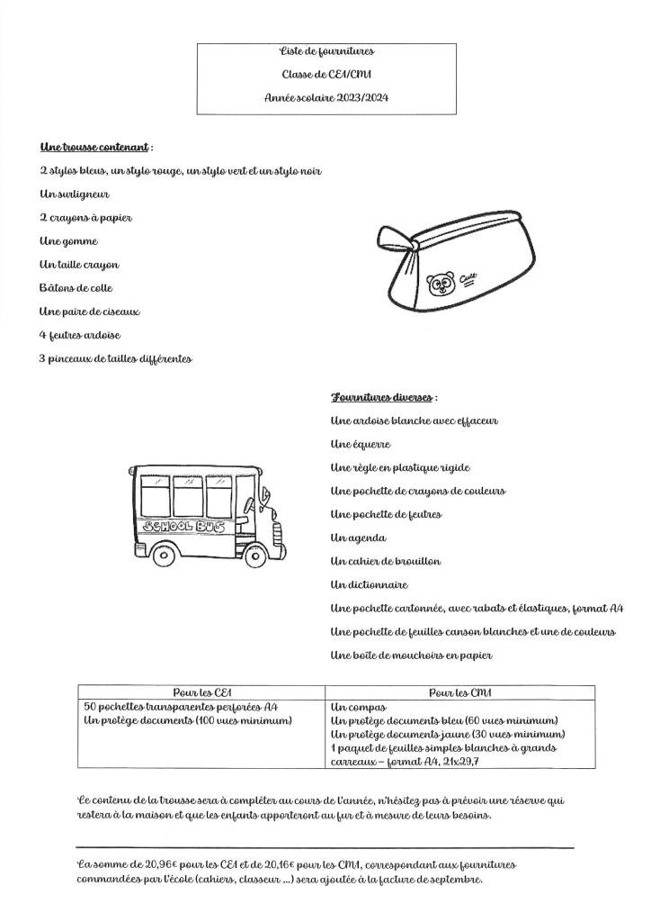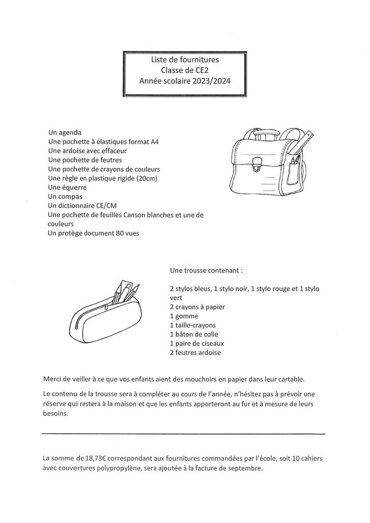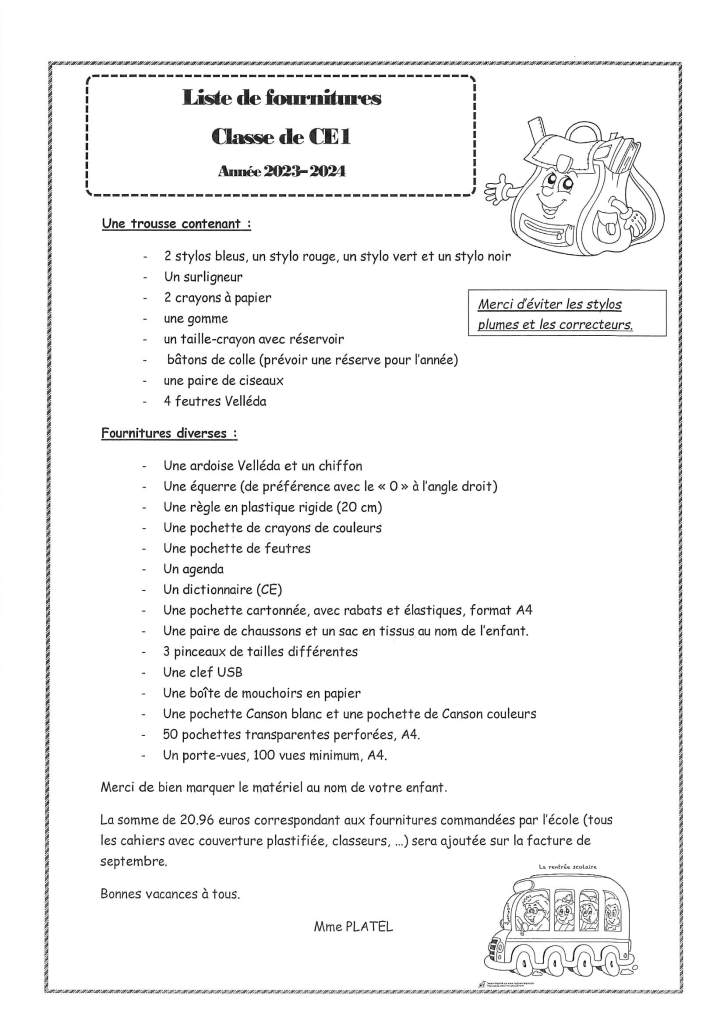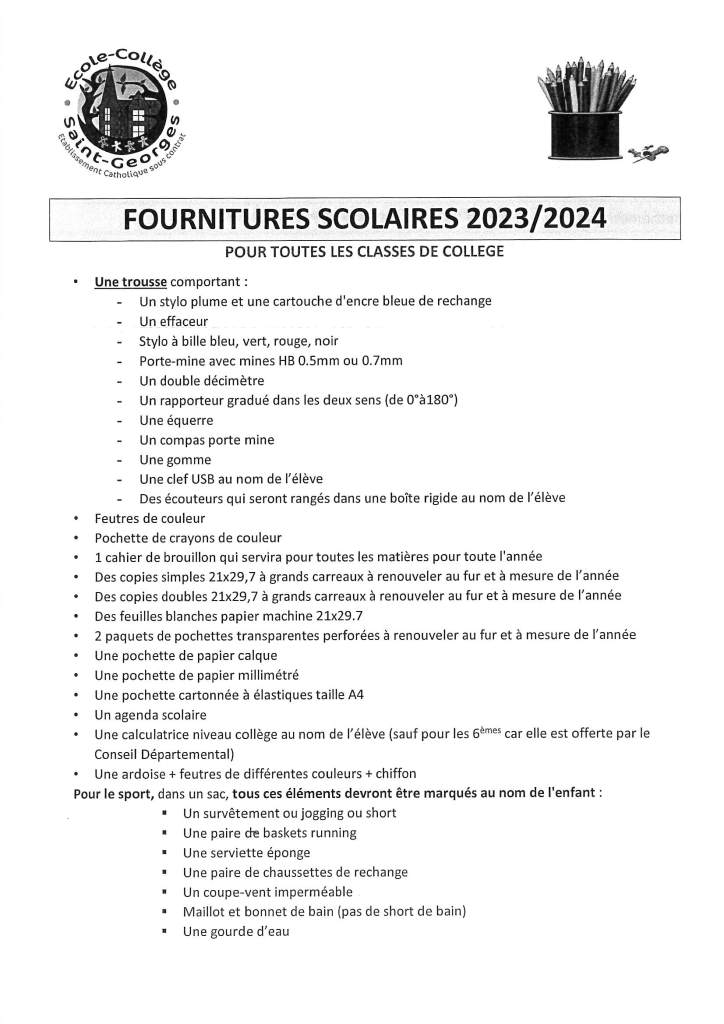 LISTES DE FOURNITURES ÉCOLE 2023-2024