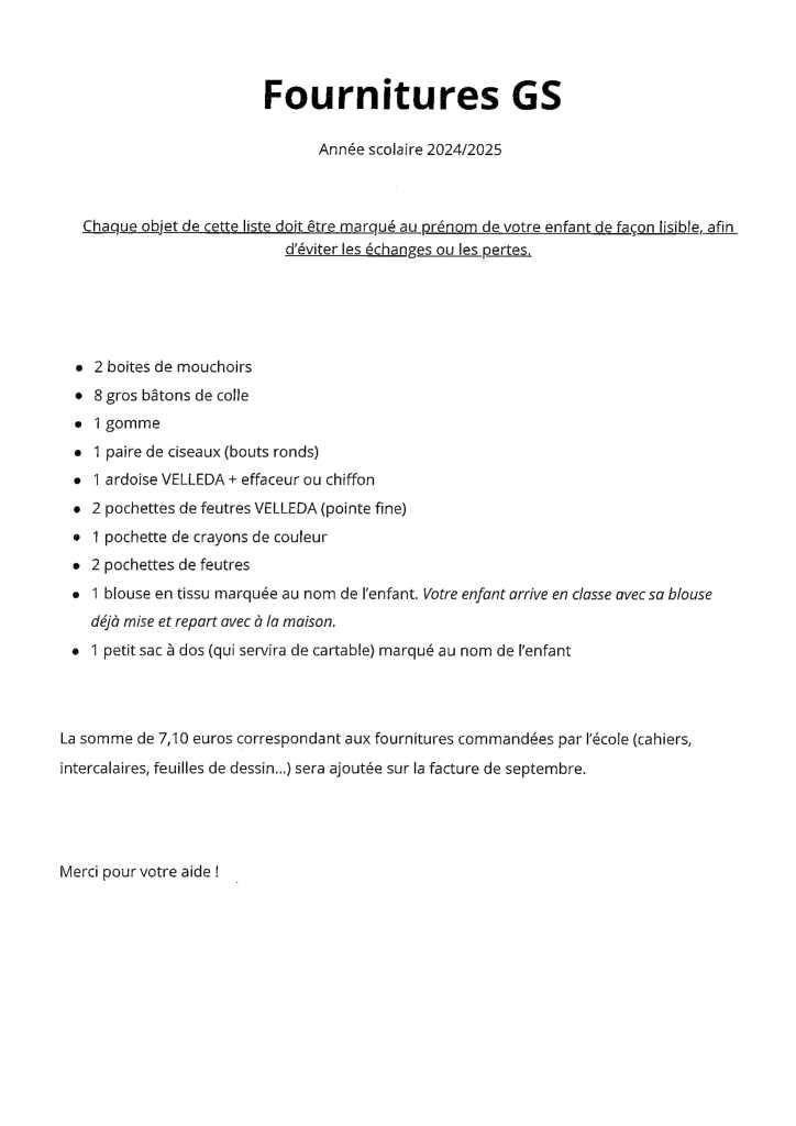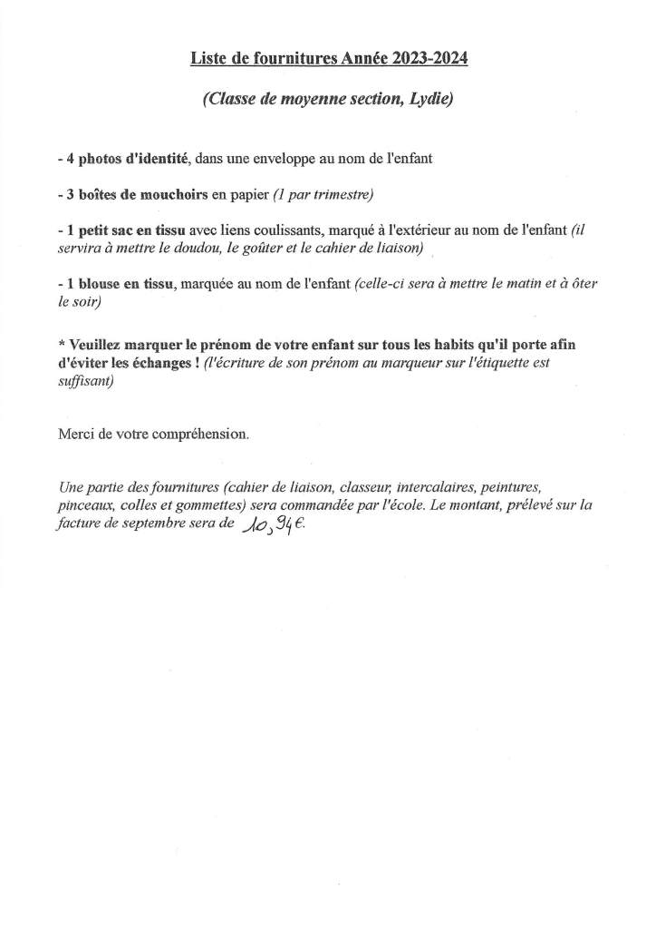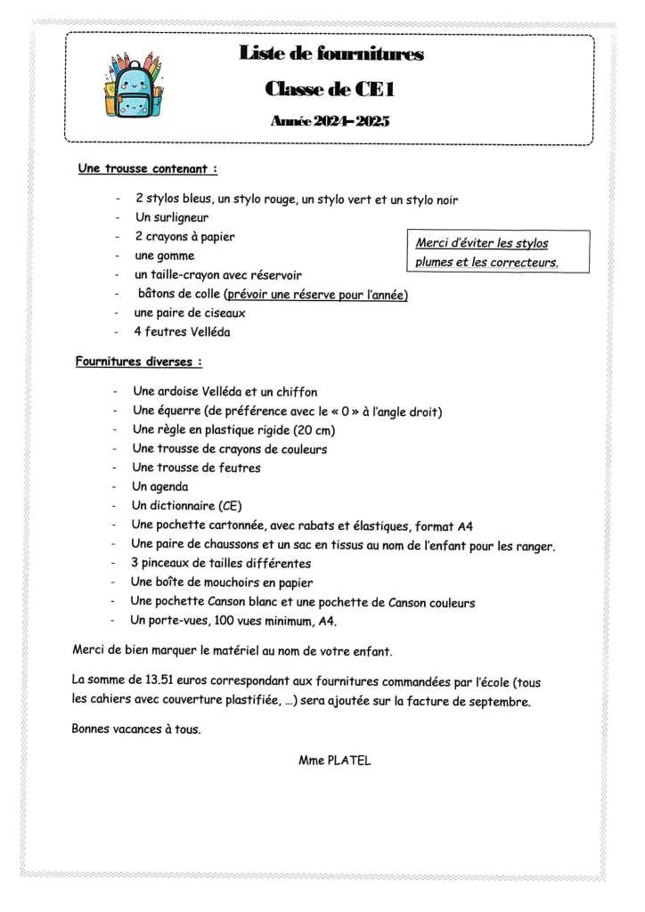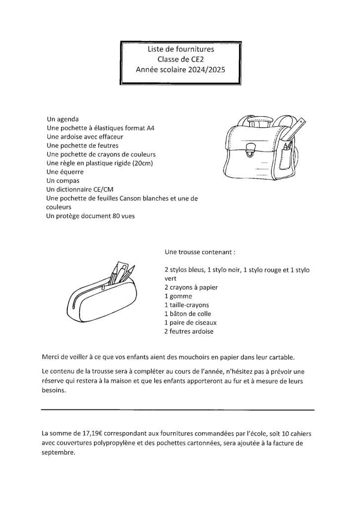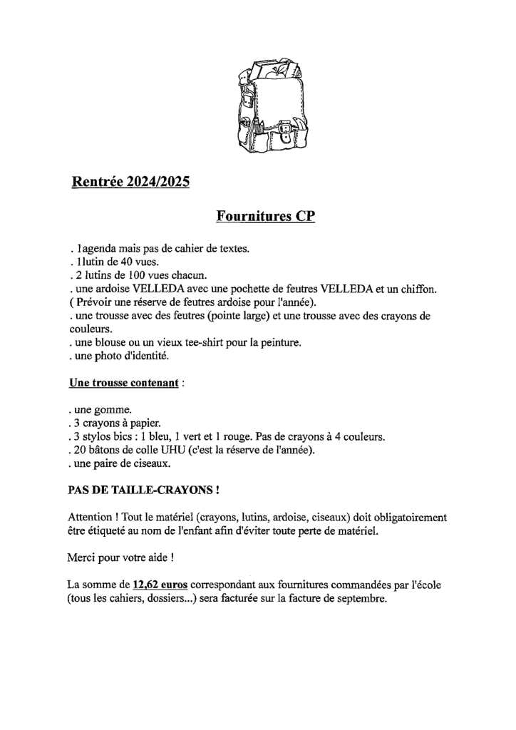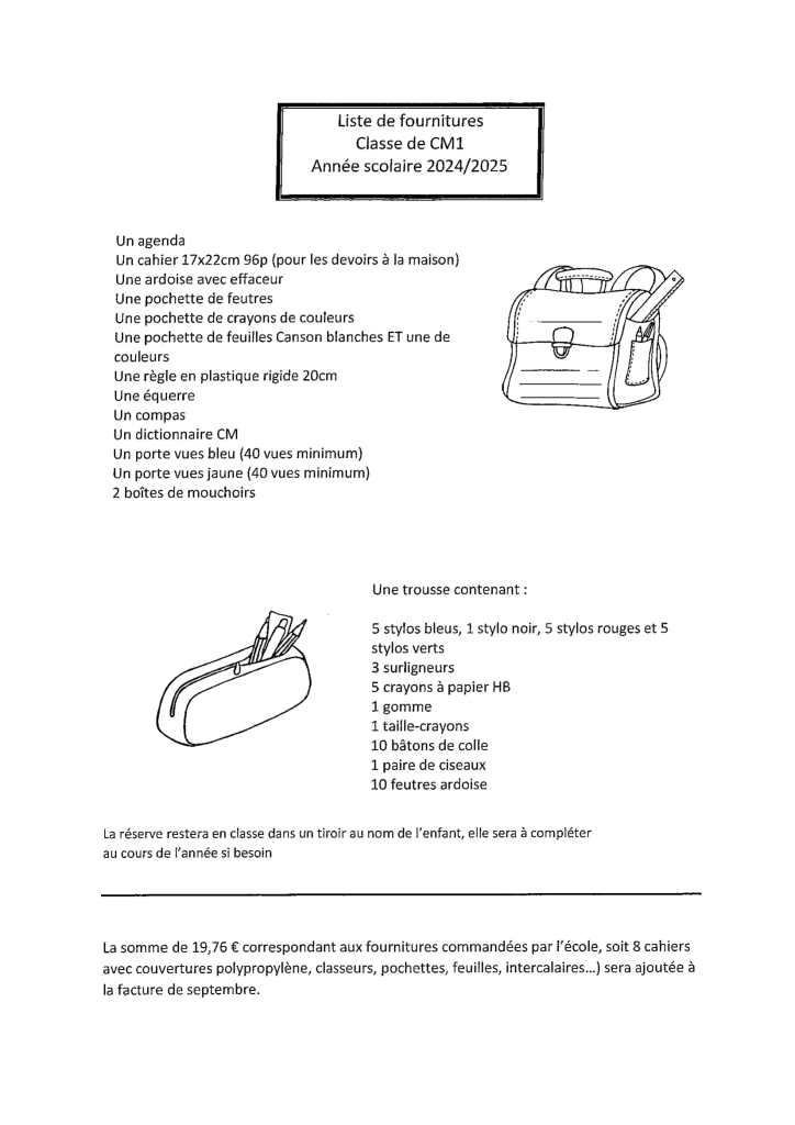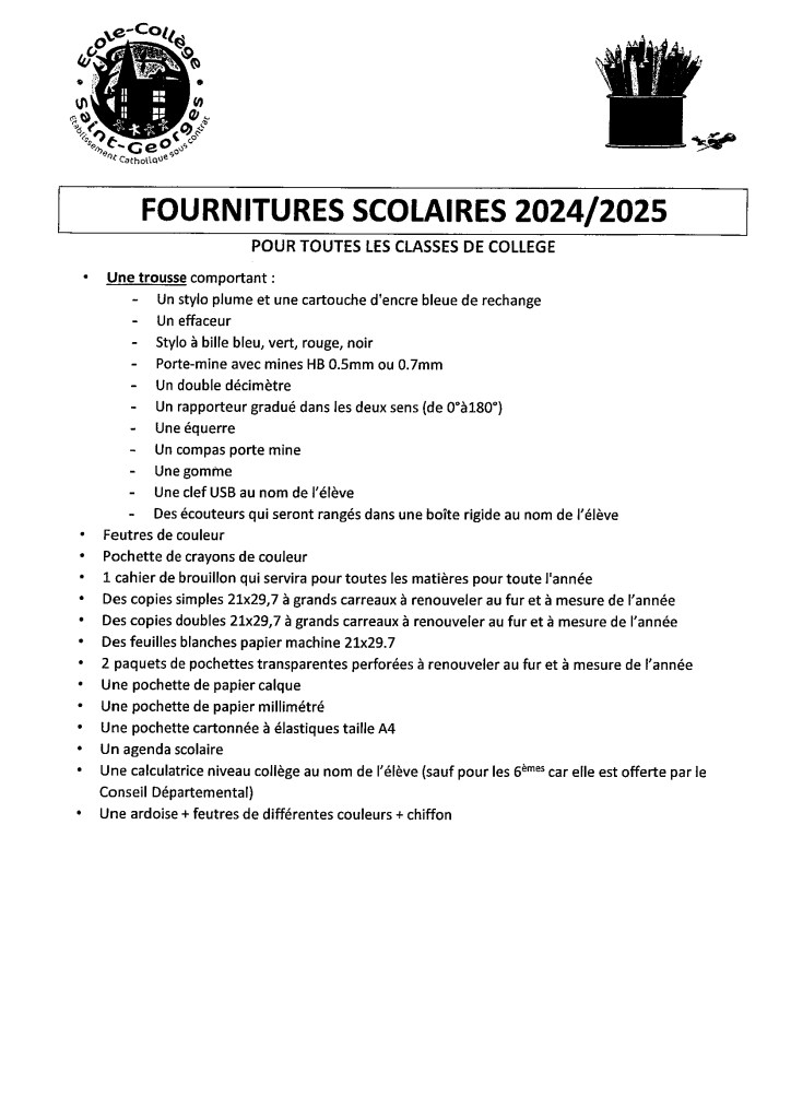 LISTES DE FOURNITURES ÉCOLE 2023-2024