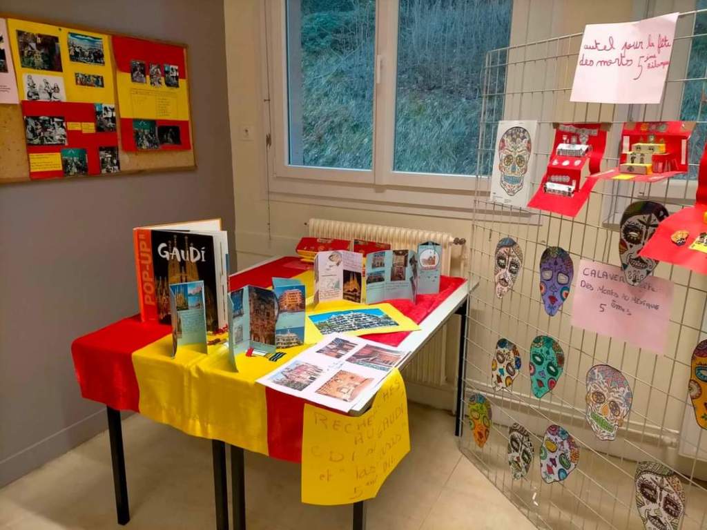 Chaque année, les classes de collège ont des noms de personnes ou de lieux célèbres choisis par les profs principaux. Cette année il y a eu une 3e Guernica. Les élèves ont donc travaillé sur la ville de Guernica, le bombardement et le célèbre tableau de Picasso. Ils ont fait des recherches au CDI puis chaque groupe a présenté son panneau aux autres en espagnol évidemment. Certains ont pris l’explication du tableau (qu’ils ont préparé en français en arts plastiques et en espagnol) à l’oral du DNB en mai.