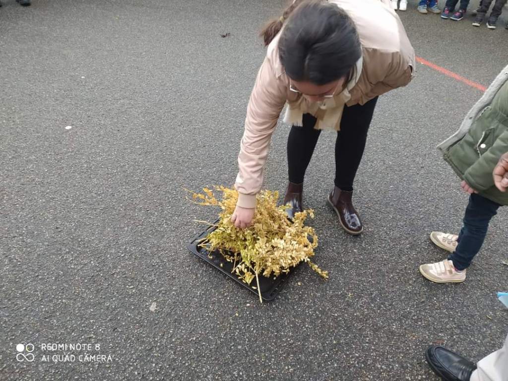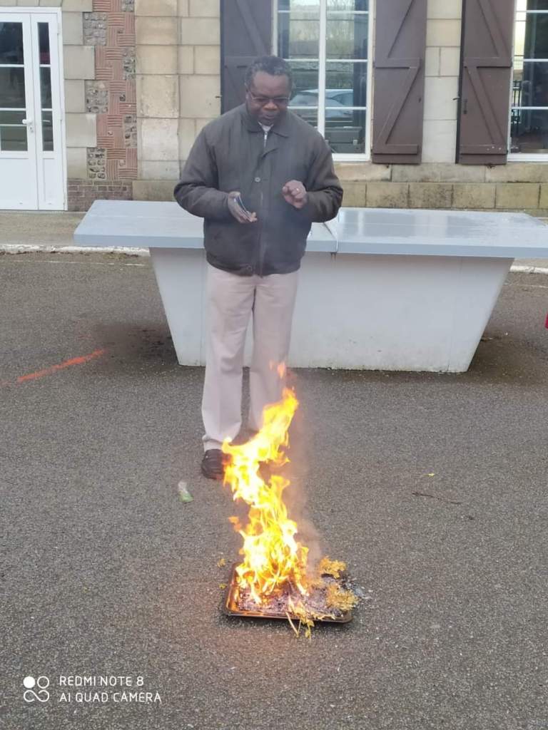 12 février 2024 : En prévision de la cérémonie des Cendres, Père Audace nous a réunis pour bruler le buis.