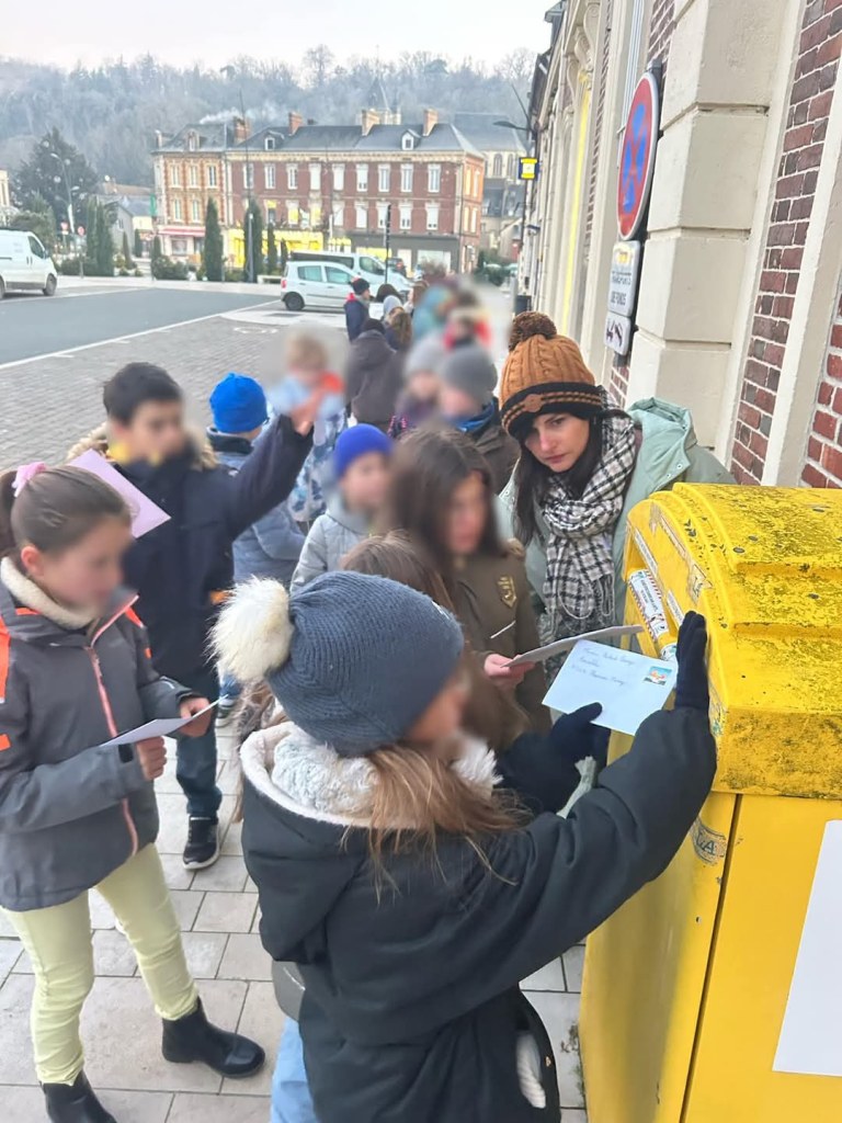 Nos élèves de CM1-CM2 ont rédigé et mis en page une carte de vœux adressée à un proche. Les élèves se sont rendus à la poste de Beaumont le Roger pour y envoyer leur lettre. Une chouette expérience !