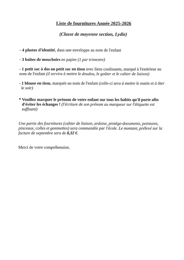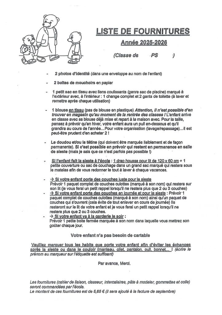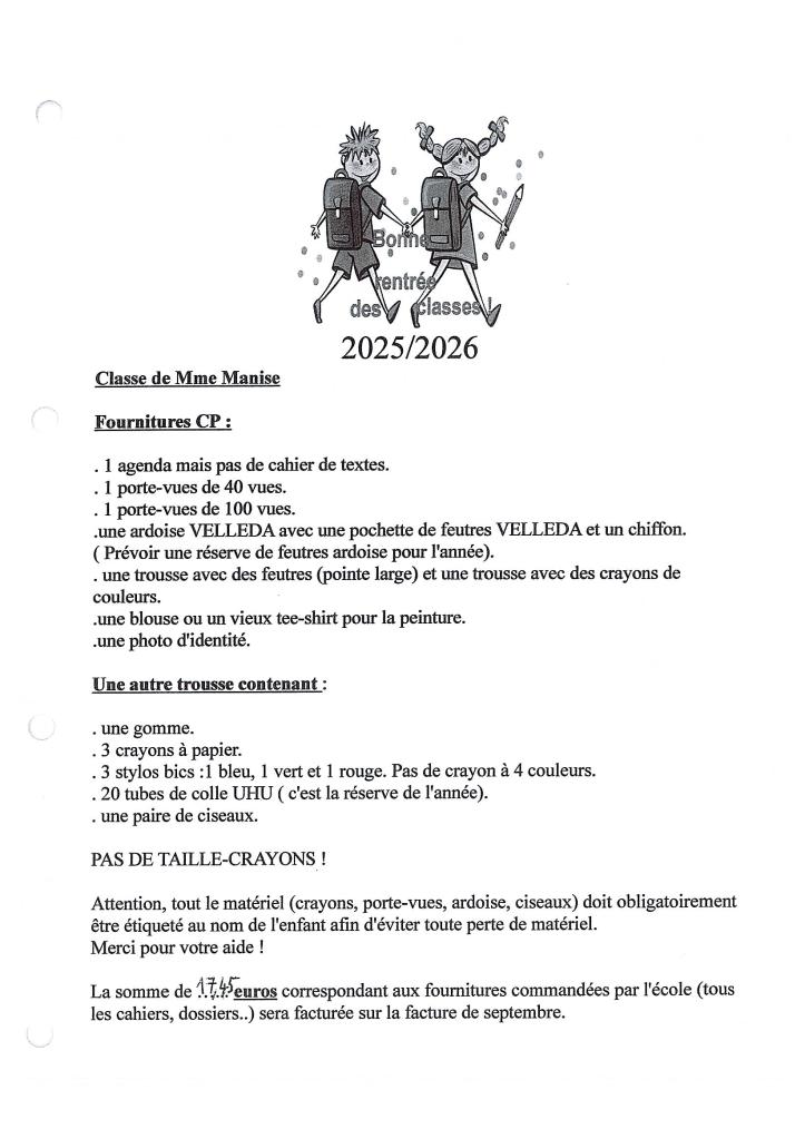 LISTES DES FOURNITURES SCOLAIRES 2025-2026