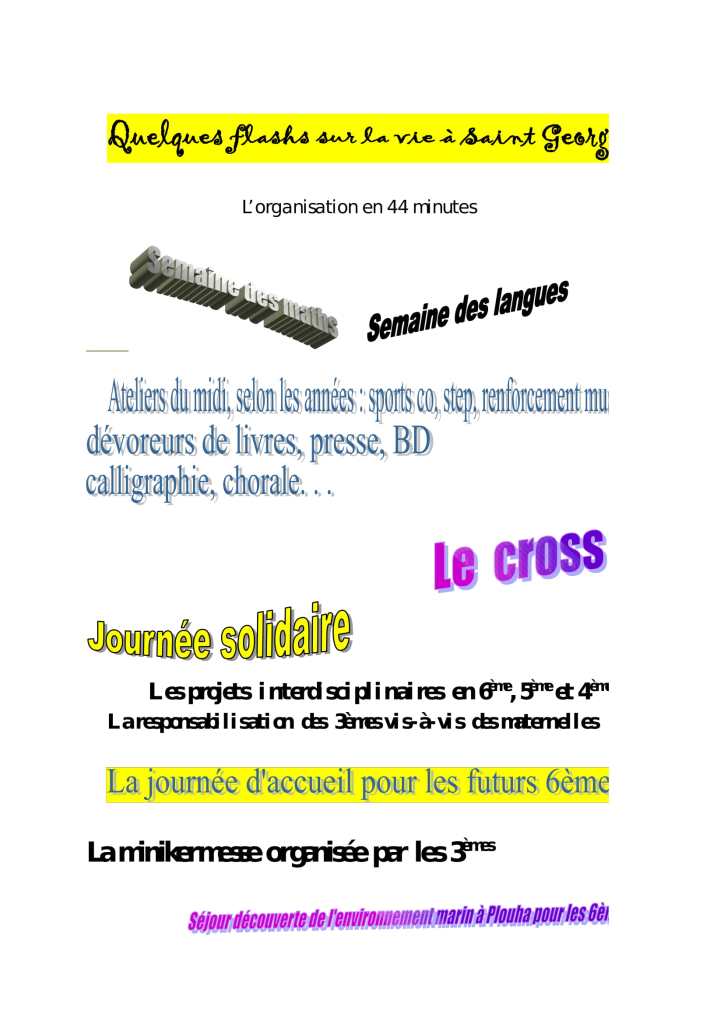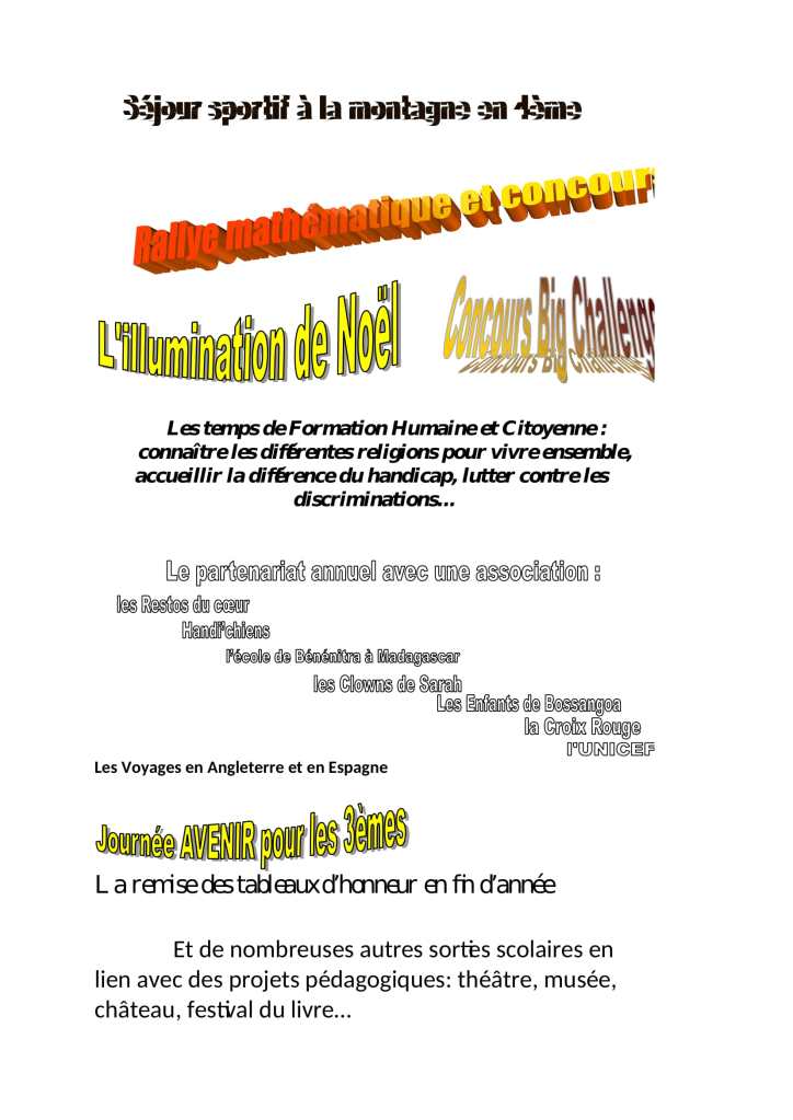 - Des classes bilangue anglais/espagnol de la 6ème à la 3ème permettant un accès à la section européenne du lycée.